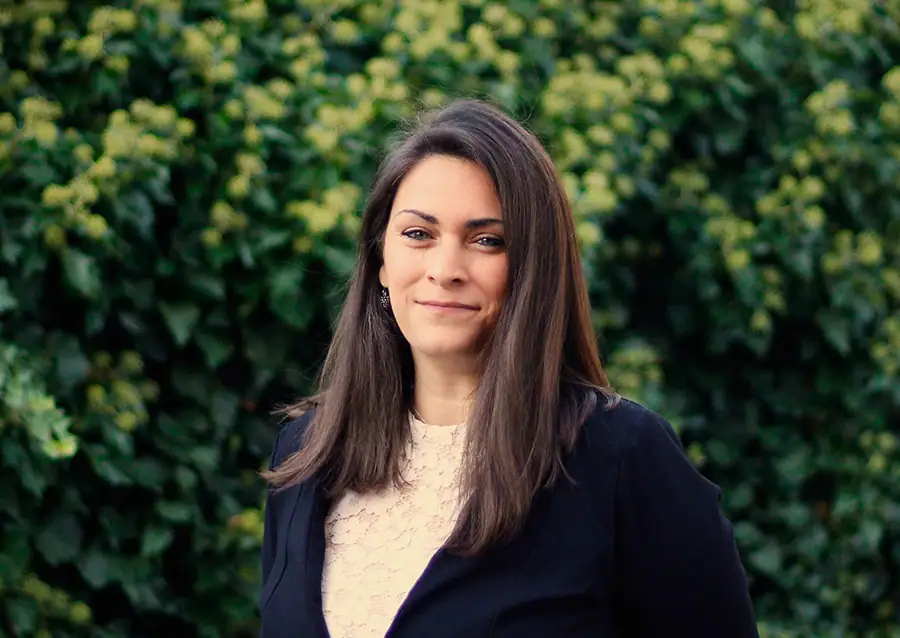 Professional headshot for Wetland Biologist Tiffany Toukatly, background is a wall of ivy.